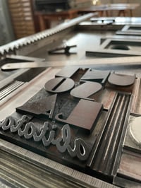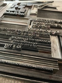 Composizione a caratteri mobili di legno e metallo. Stampa letterpress a due colori con torchio ad avanzamento manuale.